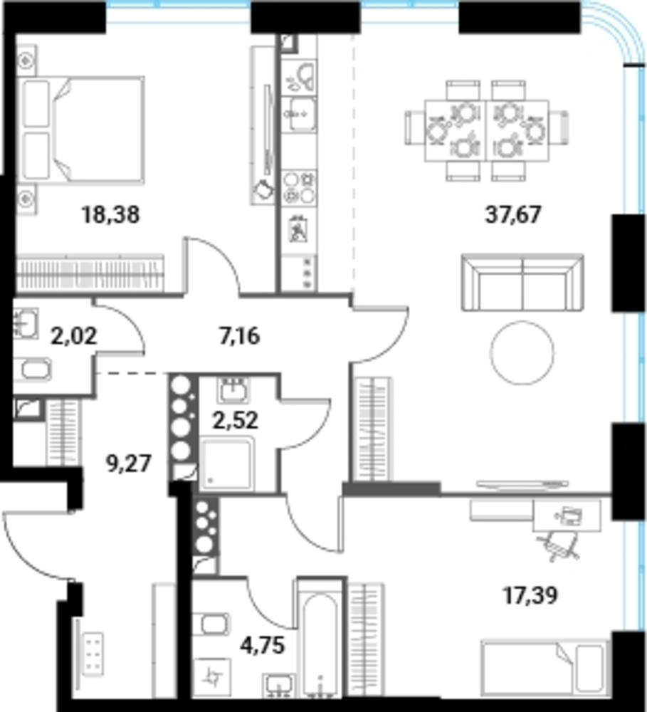 Трехкомнатная квартира в ЖК "Инноватор" на 18 этаже. Квартира без отделки, после выдачи ключей можно делать ремонт. Общая площадь: 99.16 кв.м. Высота потолков 3.1 м. Квартира находится в корпусе Б. Дом монолитный, одноподъездный, высотой 28 этажей. На этаже 8 квартир. В подъезде 4 грузовых лифта. Выдача ключей до 31.10.2025 года. В шаговой доступности от жилого комплекса расположены станции метро (расстояние по прямой): «Мичуринский проспект» (100 м), «Аминьевская» (1.5 км), «Раменки» (1.6 км), «Проспект Вернадского» (1.8 км), «Матвеевское» (1.8 км), также недалеко от этого корпуса расположена станция метро «Ломоносовский проспект». Новые высотные доминанты престижного района Раменки – две 28-этажные башни А и Б – органично дополняют панораму Мичуринского проспекта благодаря сочным фасадам с фруктовыми паттернами от известного архитектурного бюро СПИЧ. Уличные фасады соответствуют духу района. Моллированное или изогнутое стекло – это инновационное решение в архитектуре города, которое превращает стильные плавные стеклянные фасады в настоящую скульптуру, придавая им воздушность и легкость. Интеллектуальная система управления сервисами дома, уютное пространство двора от Imperial Garden, стильные лобби от Blank Architects, самодостаточная инфраструктура в доме, двухуровневый подземный паркинг и кладовые – здесь все лучшие решения для инноваторов. (AQID02260478)
