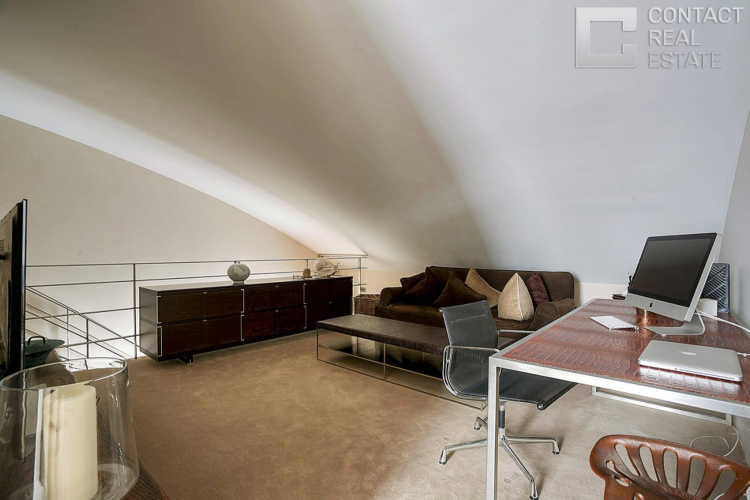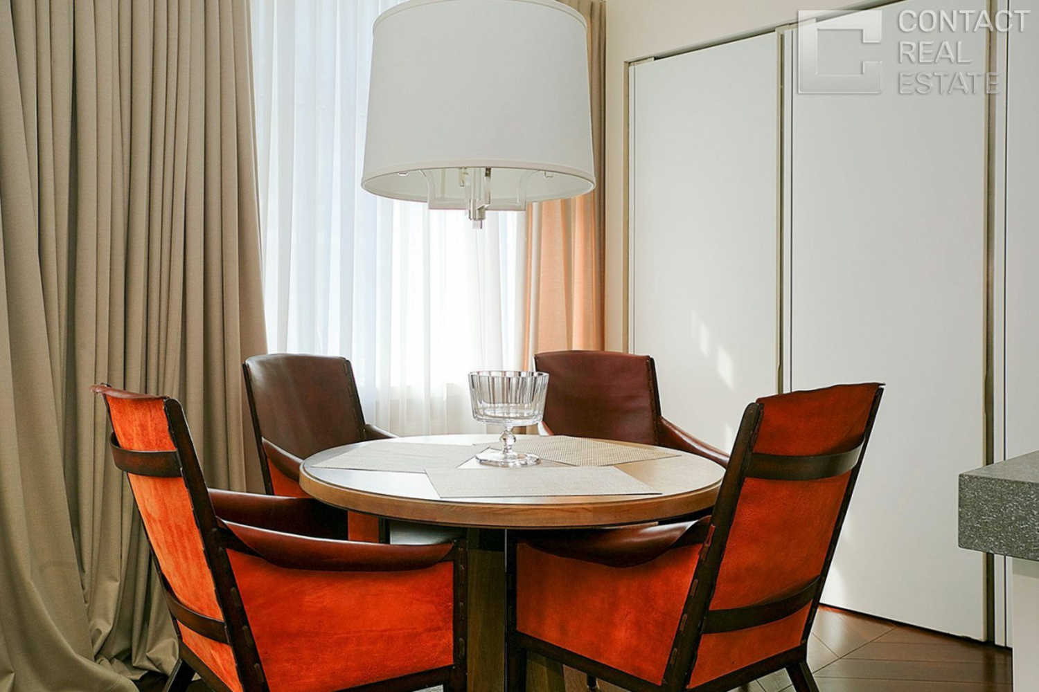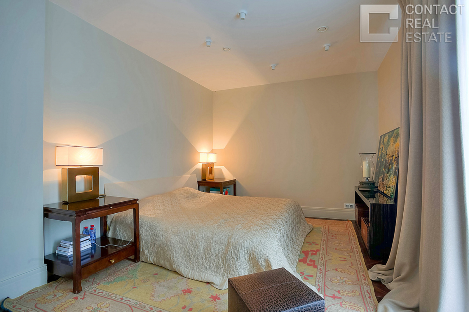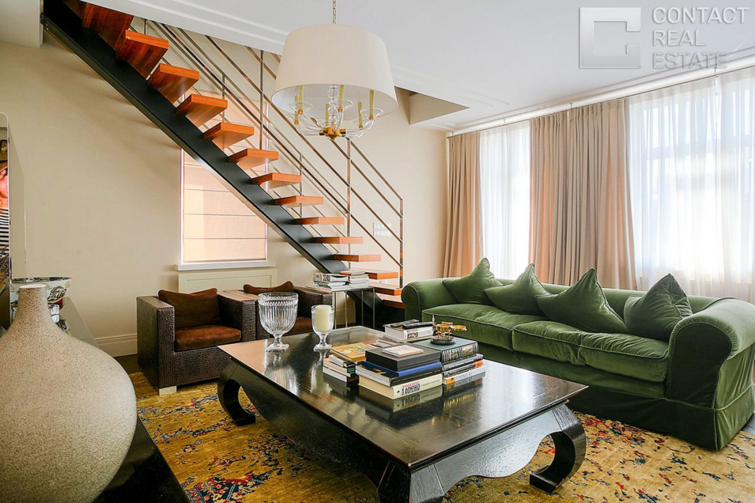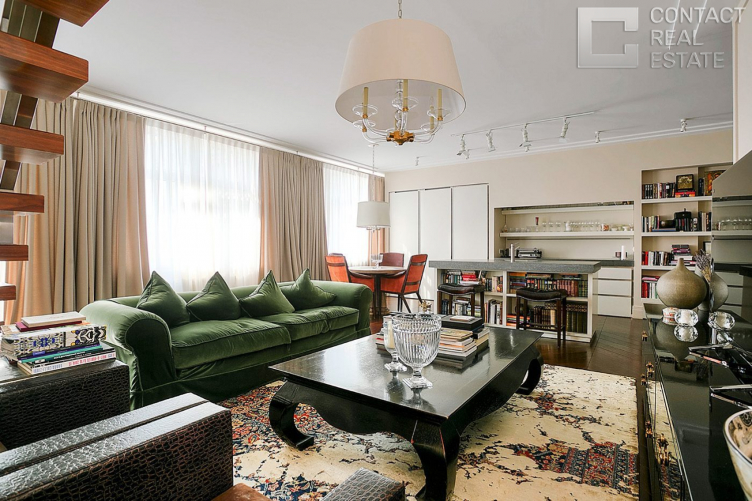 В элитном ЖК «Спутник» на Остоженке предлагается двухуровневый пентхаус с живописными видами на исторический центр Москвы. Общая площадь составляет 240 кв.м. На первом уровне обустроены: кухня, объединенная с гостиной, спальня с ванной комнатой и гардеробной, гостевой санузел; на втором уровне спланированы: две спальни, санузел, проходная комната свободного назначения, теплая просторная терраса с мансардными окнами, открытая терраса для барбекю. Интерьер пентхауса оформлен в современном стиле. Жилой дом расположен на приватной охраняемой территории с круглосуточным видеонаблюдением. К квартире предусмотрено машиноместо в подземном паркинге. [Лот #11365]