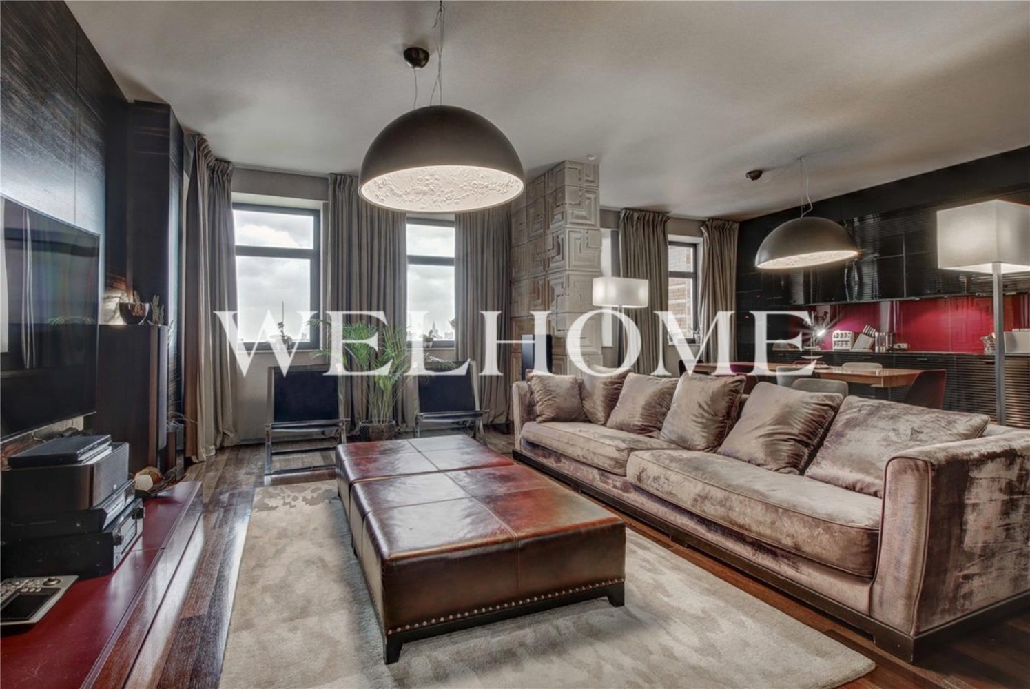 ID объекта: G-5969. Эксклюзивная четырехкомнатная квартира с дизайнерской отделкой выполненной в стиле Ар-деко. Планировочное решение продумано до мелочей. Квартира разделена на общественную и приватную зоны. Общественное пространство представляет собой просторую гостиную объединенную с кухней-столовой, а также холл, в котором спрятано большое количество вместительных шкафов, позволяющих хранить массу вещей. Приватная зона в свою очередь также разделена на детскую часть и хозяйскую. В детской две изолированные спальни и санузел, здесь дизайн интерьера выполнен в светлых оттенках. Хозяйская часть представляет собой полностью изолированное пространство состоящее из спальни, просторной гардеробной ванной комнат.Дополнительно имеется два машиноместа в подземном паркинге и кладовое помещение!