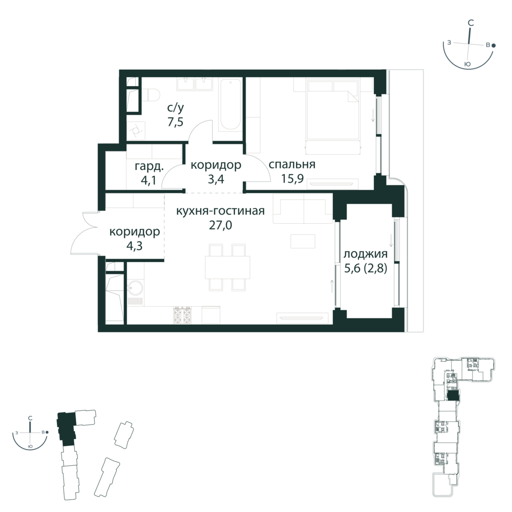 1 комнатная квартира