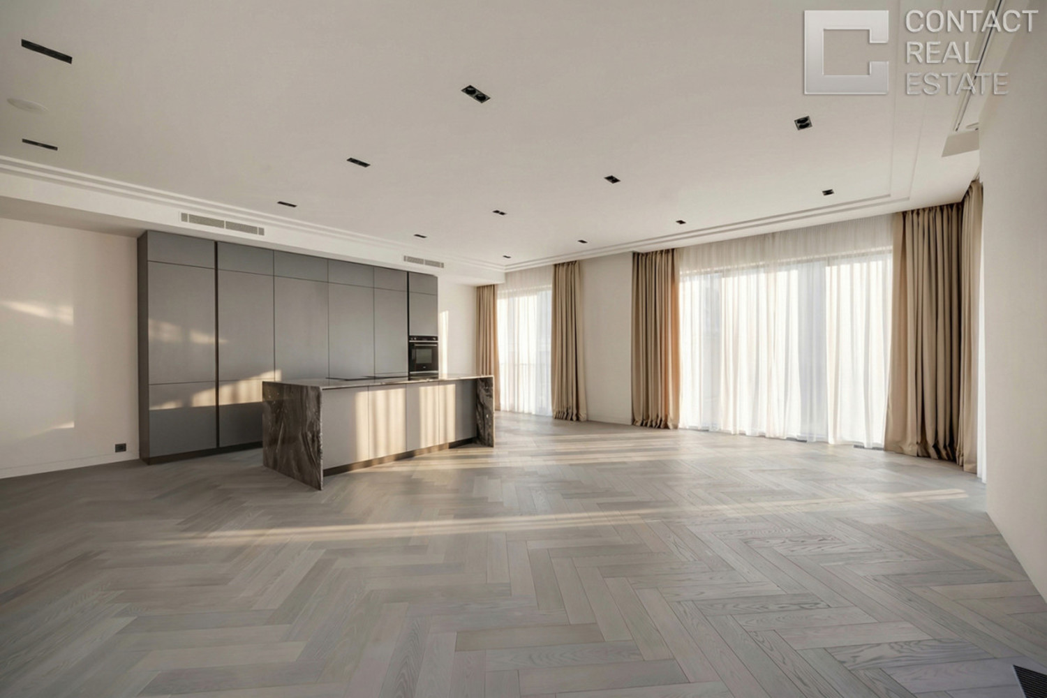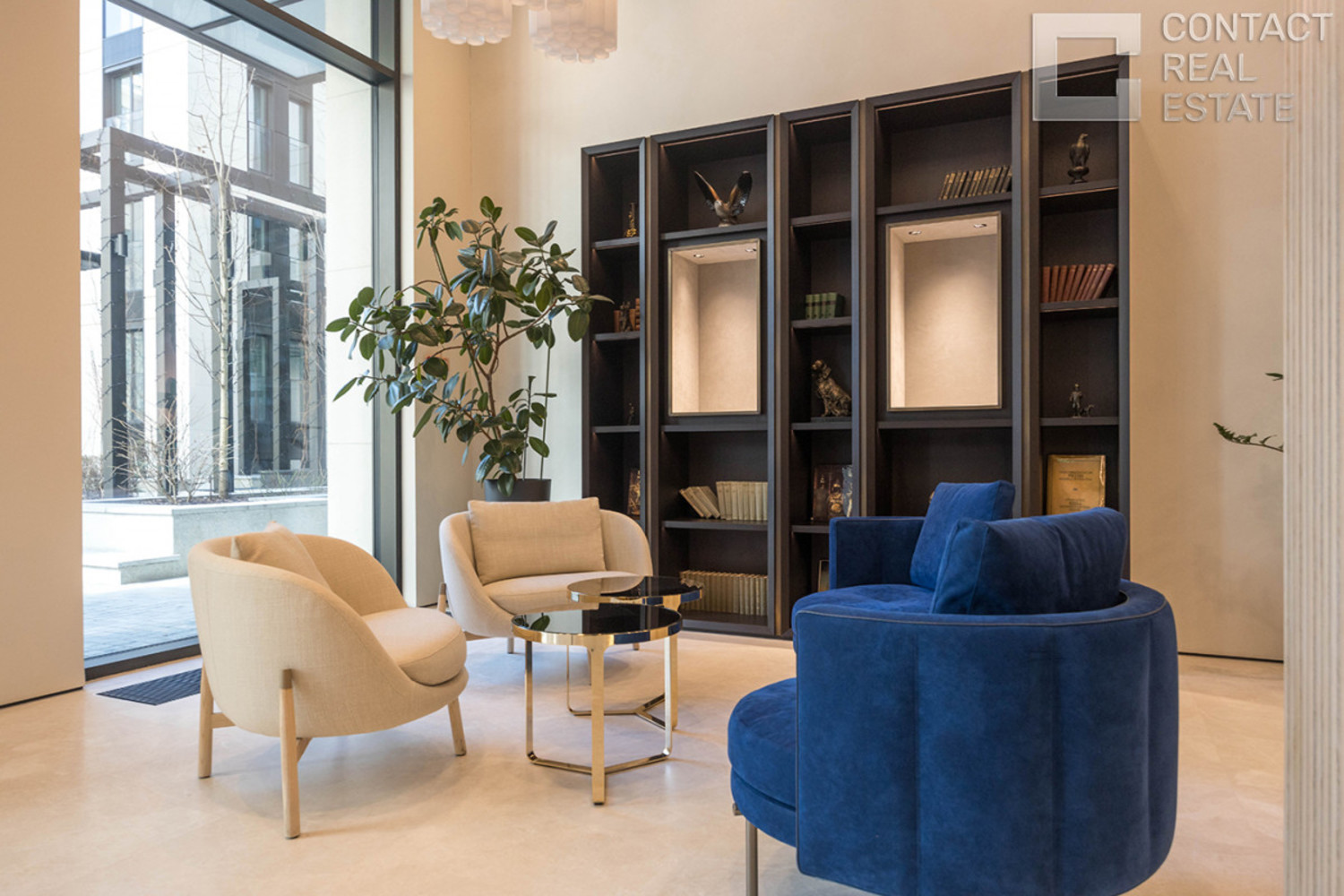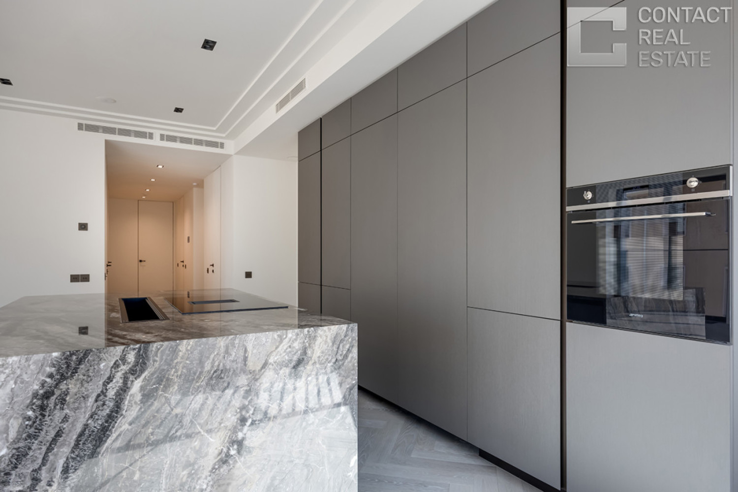 4-комнатная квартира площадью 148 м² с премиальной отделкой в элитном клубном доме Turgenev Планировка: кухня-столовая-гостиная, мастер-спальня со своим санузлом и гардеробной, ещё 2 спальни и 2 санузла, прихожуая с гардеробной. Дизайнерская отделка от нидерландского бюро Wolterinck. Пол из паркетной доски Austriawood, стены — итальянская краска PRATTA Exclusive, в санузлах — английская штукатурка Tadelakt и натуральный мрамор. Кухня — от итальянского бренда Cesar со встроенной техникой Smeg и поверхностями из эксклюзивного итальянского мрамора Arabescato Grigio Orobico. [Лот #24939]