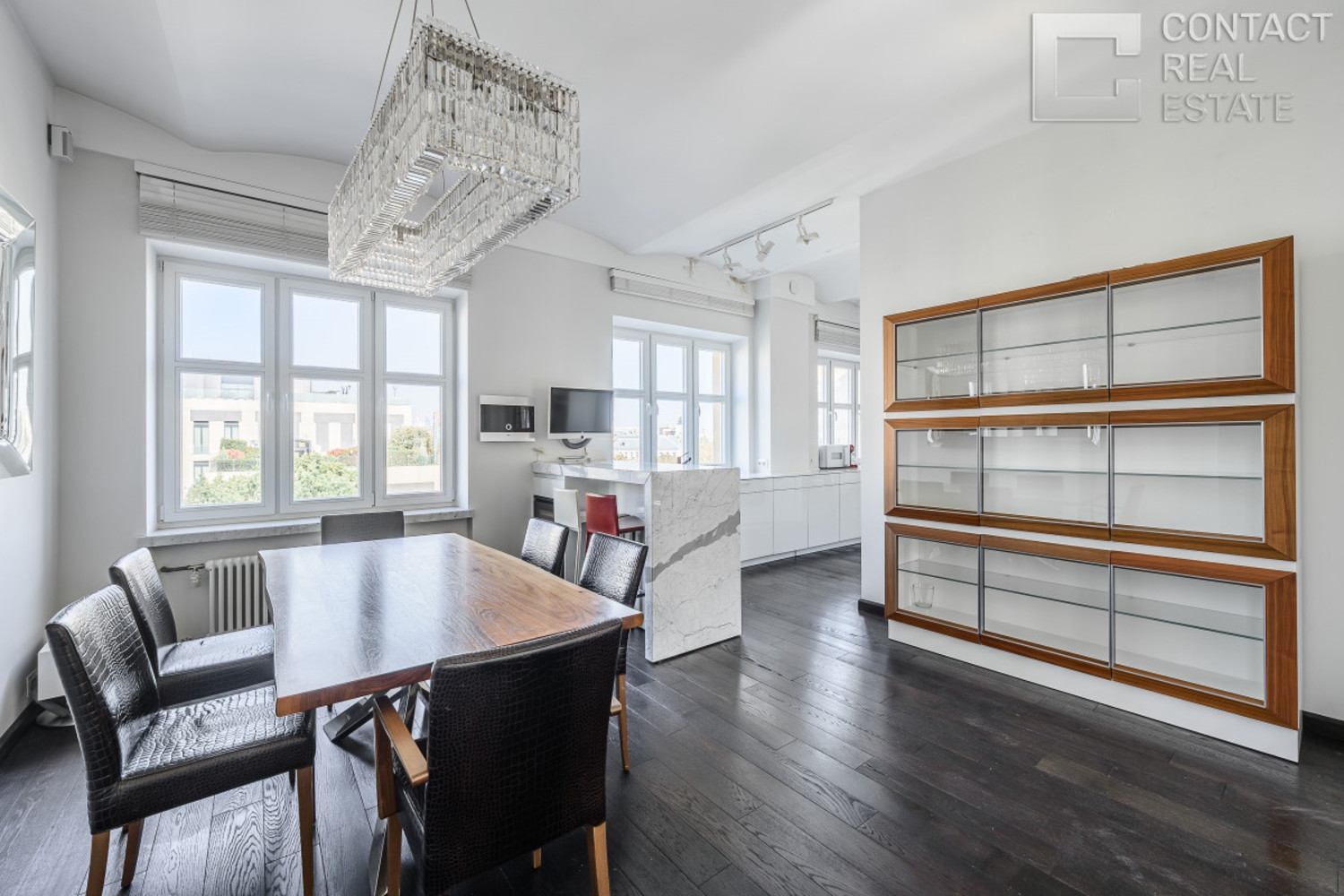Квартира представляет собой объединение трех квартир. Проведена полная реновация конструктивных элементов с замена всех инженерных систем, окон и дверей на современные европейские аналоги, внедрены дополнительные современные системы кондиционирования, система охраны и безопасности. Планировочное решение квартиры: кухня-столовая, гостиная, мастер-спальная родителей с гардеробной и ванной комнатой, детский блок из двух комнат и отдельной ванной, домашний кинотеатр и библиотека, два дополнительных гостевых с/у. Высота потолков 3,1 м. Окна выходят в сторону двора , и тихого Гранатного переулка. [Лот #23342]