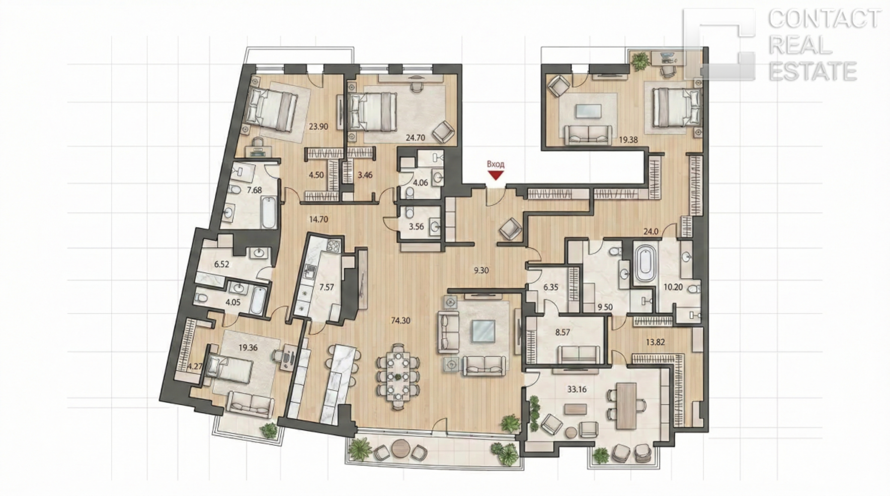 Роскошные апартаменты на пятом этаже клуба "У Патриарших" Предлагается эксклюзивное пространство площадью 350 м² с четырьмя спальнями, расположенное на пятом этаже семиэтажного клубного дома "У Патриарших", всего в 9 минутах пешком от метро "Пушкинская". Это идеальный выбор для ценителей приватности, эстетики и высокого уровня жизни в центре Москвы. [Лот #24827]