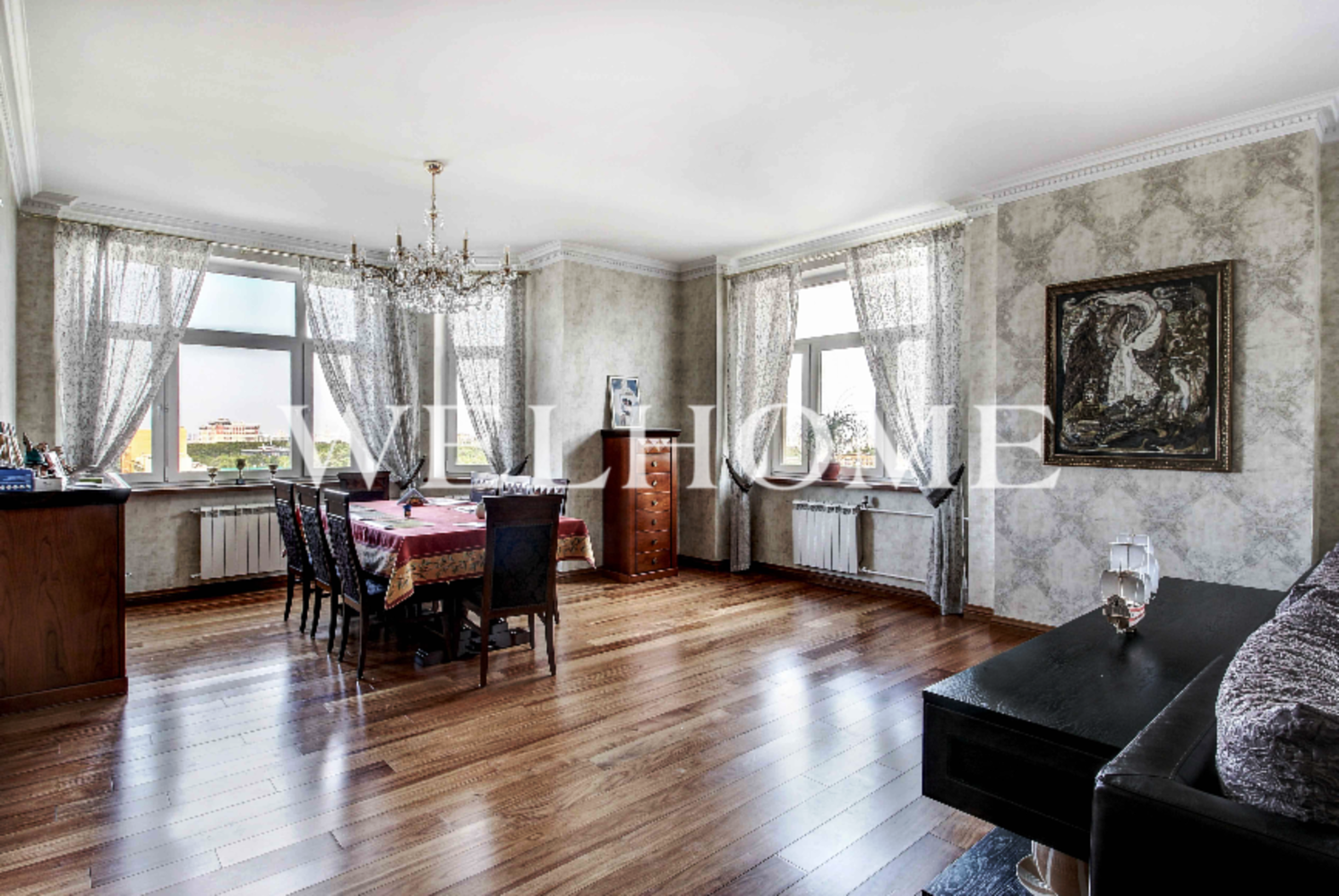 ID объекта: G-3676. Просторная квартира с отделкой общей площадью 250 кв. м в жилом комплексе "Шуваловский". Планировка: гостиная-столовая, кухня, 5 изолированных спален, кабинет, 2 гардеробные, 3 санузла, кладовая. Отделка выполнена в современном стиле с использованием высококачественных отделочных материалов. Комнаты укомплектованы мебелью от ведущих производителей, в санузлах установлена сантехника премиум-класса, кухня укомплектована бытовой техникой. Из окон открывается вид на здание МГУ и ММДЦ "Москва-Сити". Одно машиноместо в подземном паркинге включено в стоимость.