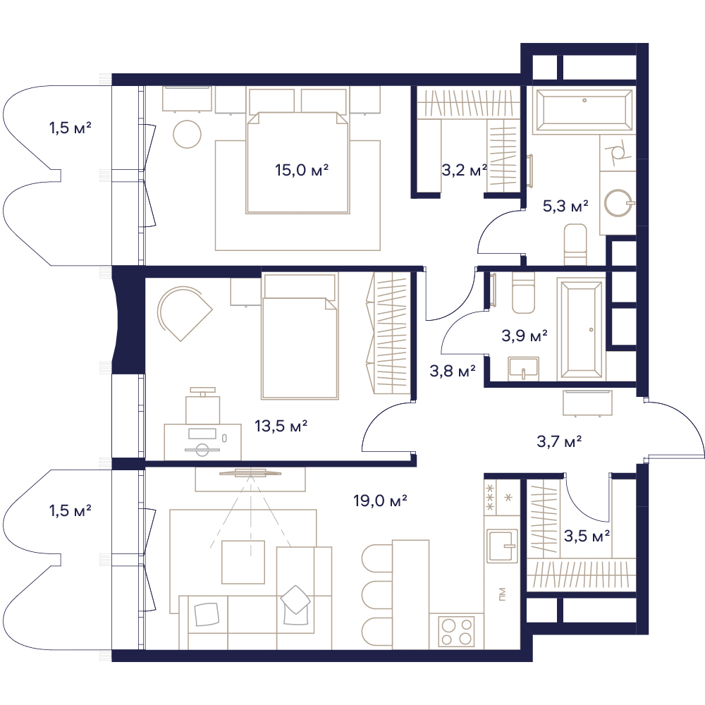 Продаётся 2-комнатная квартира площадью 74.1 м² на 13 этаже в Жилом Комплексе "Союз". Первый жилой спортивно-оздоровительный квартал с рекордным количеством олимпийских видов спорта, доступных жителям 24/7. В прямом доступе у жителей спортивно-оздоровительного кластера юности и здоровья: - Ледовая арена для хоккея и фигурного катания, - Футбольные поля для тренировок, - Спортивный зал для фехтования, - Бассейн на 6 дорожек, - Центр единоборств, - 4 крытых площадки для настольного тенниса, - 7 теннисных кортов (крытых и открытых), - 4 крытых площадки для сквоша, - Легкоатлетический стадион, площадки для баскетбола и волейбола