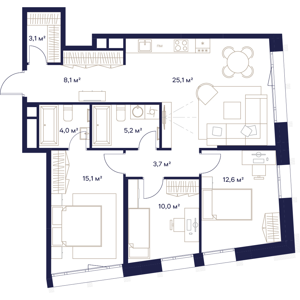 3 комнатная квартира