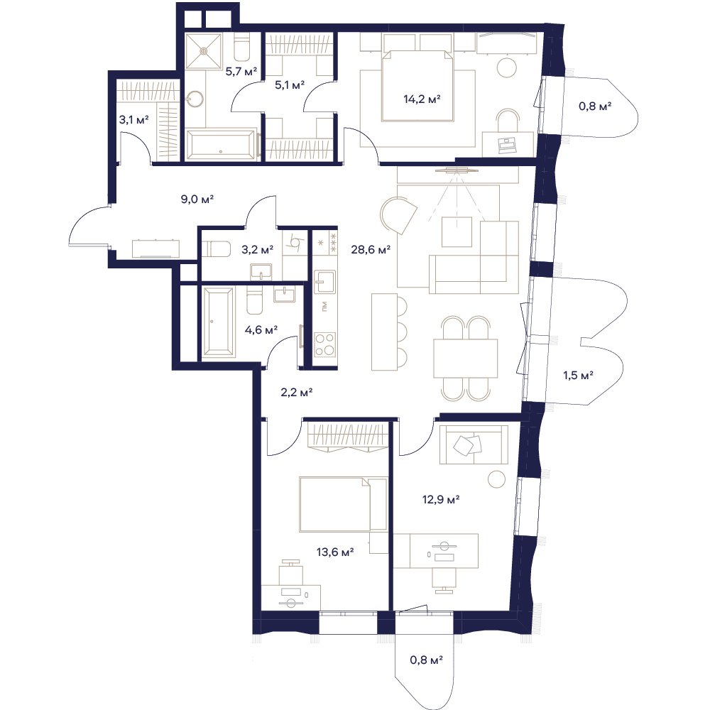 Продаётся 3-комнатная квартира площадью 105.6 м² на 14 этаже в Жилом Комплексе "Союз". Первый жилой спортивно-оздоровительный квартал с рекордным количеством олимпийских видов спорта, доступных жителям 24/7. В прямом доступе у жителей спортивно-оздоровительного кластера юности и здоровья: - Ледовая арена для хоккея и фигурного катания, - Футбольные поля для тренировок, - Спортивный зал для фехтования, - Бассейн на 6 дорожек, - Центр единоборств, - 4 крытых площадки для настольного тенниса, - 7 теннисных кортов (крытых и открытых), - 4 крытых площадки для сквоша, - Легкоатлетический стадион, площадки для баскетбола и волейбола