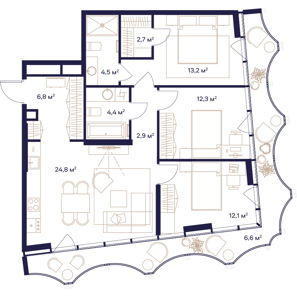 3 комнатная квартира