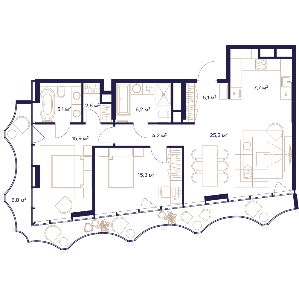 Продаётся 2-комнатная квартира площадью 94.1 м² на 3 этаже в Жилом Комплексе "Союз". Первый жилой спортивно-оздоровительный квартал с рекордным количеством олимпийских видов спорта, доступных жителям 24/7. В прямом доступе у жителей спортивно-оздоровительного кластера юности и здоровья: - Ледовая арена для хоккея и фигурного катания, - Футбольные поля для тренировок, - Спортивный зал для фехтования, - Бассейн на 6 дорожек, - Центр единоборств, - 4 крытых площадки для настольного тенниса, - 7 теннисных кортов (крытых и открытых), - 4 крытых площадки для сквоша, - Легкоатлетический стадион, площадки для баскетбола и волейбола