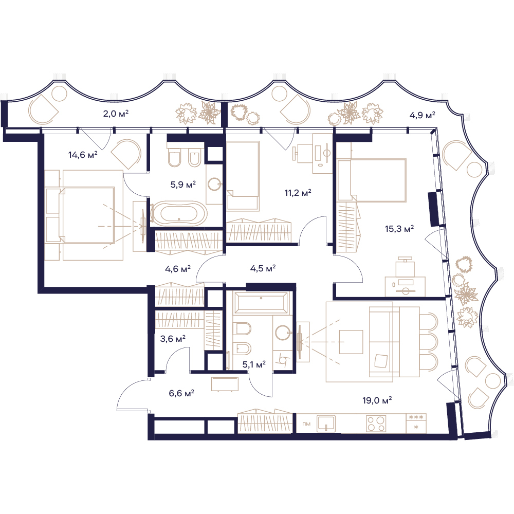 3 комнатная квартира