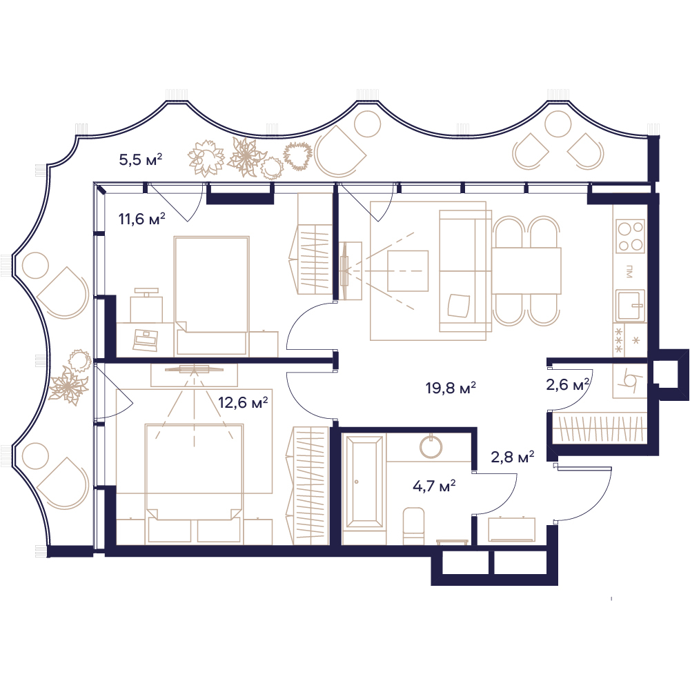 2 комнатная квартира