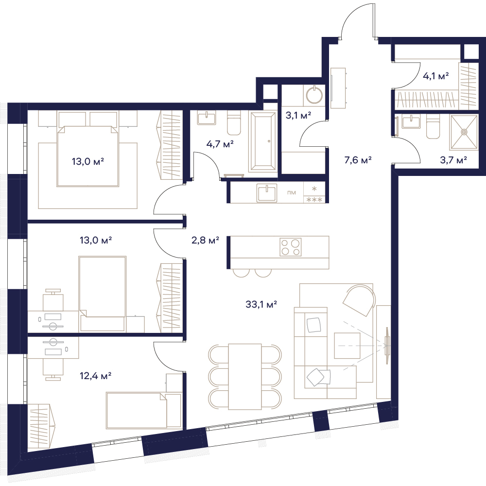 3 комнатная квартира
