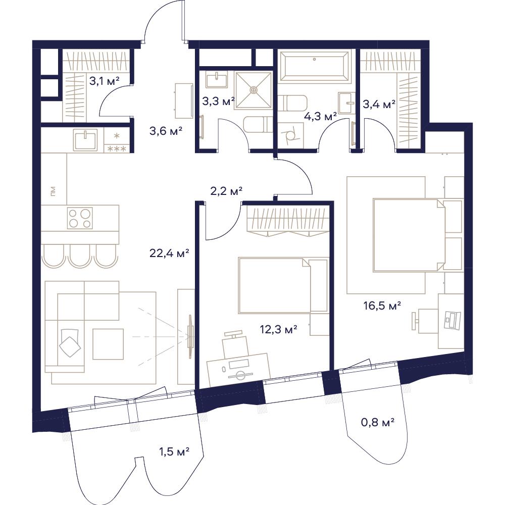 Продаётся 2-комнатная квартира площадью 73.8 м² на 13 этаже в Жилом Комплексе "Союз". Первый жилой спортивно-оздоровительный квартал с рекордным количеством олимпийских видов спорта, доступных жителям 24/7. В прямом доступе у жителей спортивно-оздоровительного кластера юности и здоровья: - Ледовая арена для хоккея и фигурного катания, - Футбольные поля для тренировок, - Спортивный зал для фехтования, - Бассейн на 6 дорожек, - Центр единоборств, - 4 крытых площадки для настольного тенниса, - 7 теннисных кортов (крытых и открытых), - 4 крытых площадки для сквоша, - Легкоатлетический стадион, площадки для баскетбола и волейбола