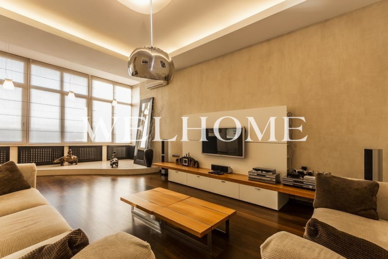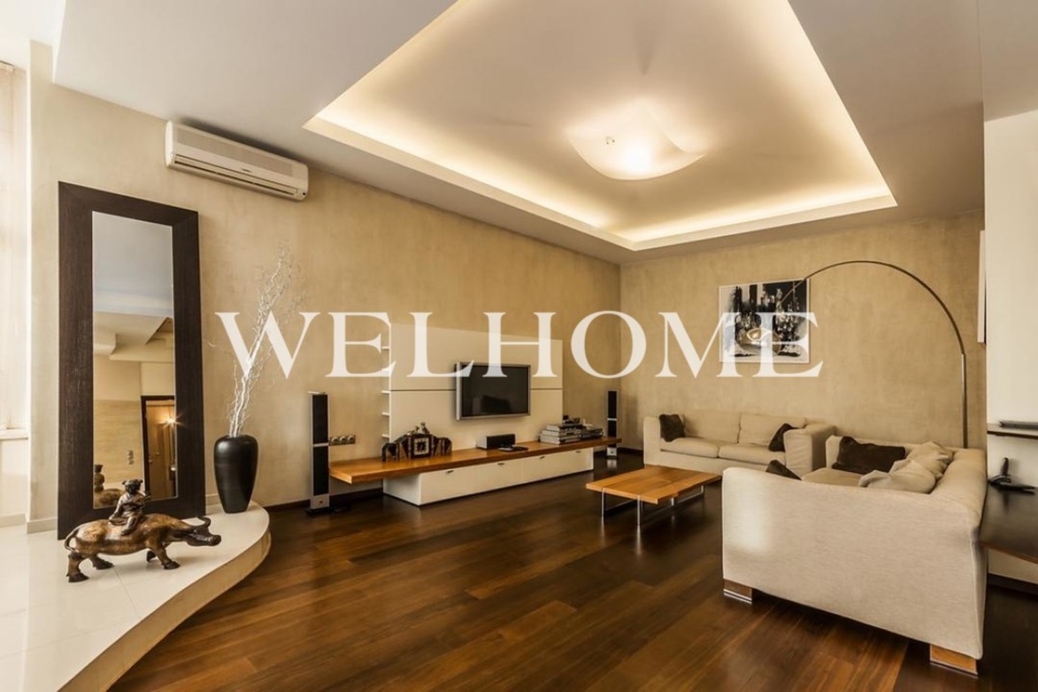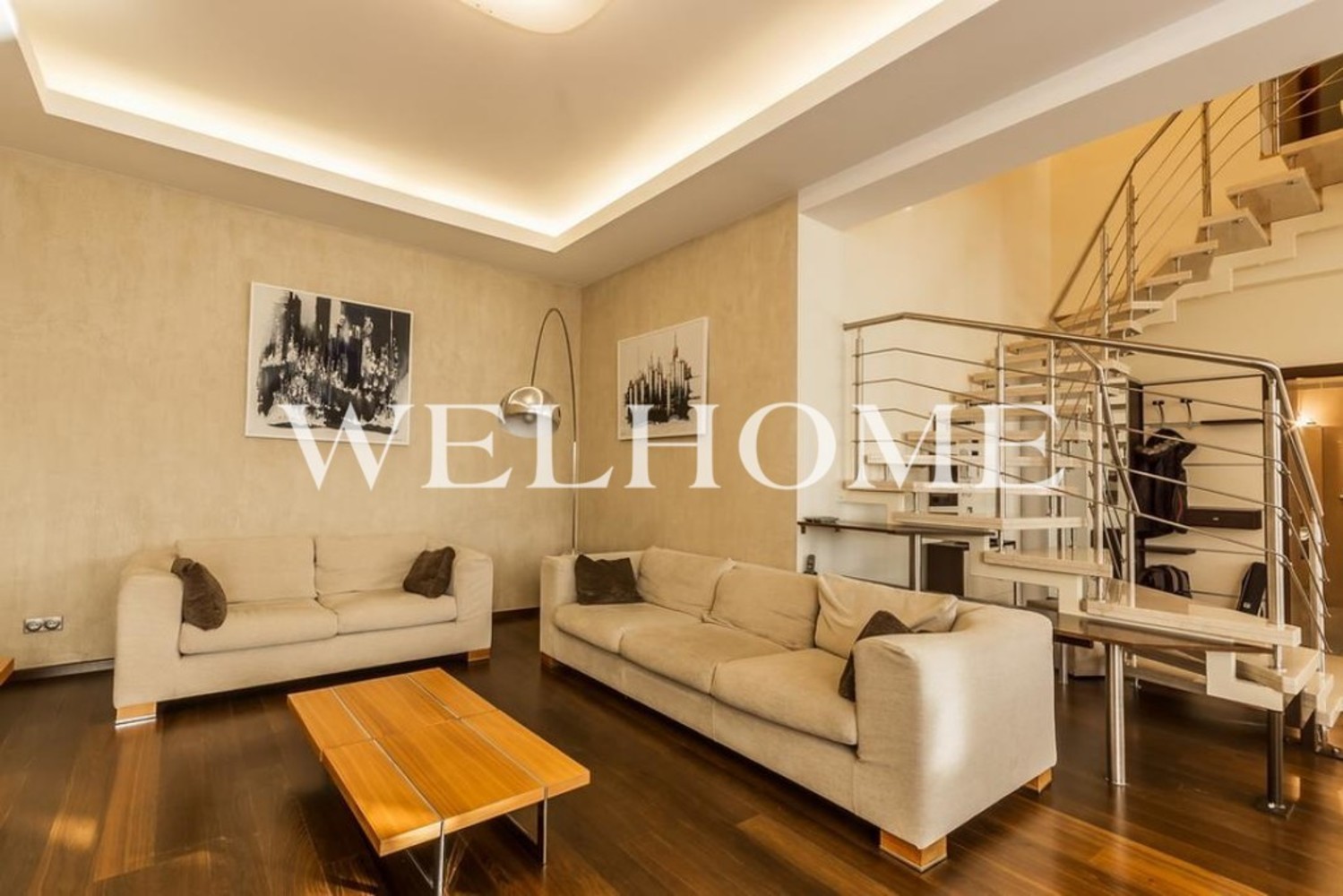 ID объекта: G-2260. На продажу предлагается двухуровневый пентхаус с отделкой в современном стиле. Пространство функционально спланировано:первый уровень: просторная гостиная, кухня-столовая, гостевой санузел;второй уровень: две спальни со своими санузлами, кабинет, гардеробная, две лоджии. В наличии вся необходимая мебель и бытовая техника от ведущих мировых производителей. Высота потолков — 3,5мВ подземном паркинге можно приобрести одно машиноместо стоимостью.Новый монолитный дом, 2001 года постройки - всего 18 квартир.