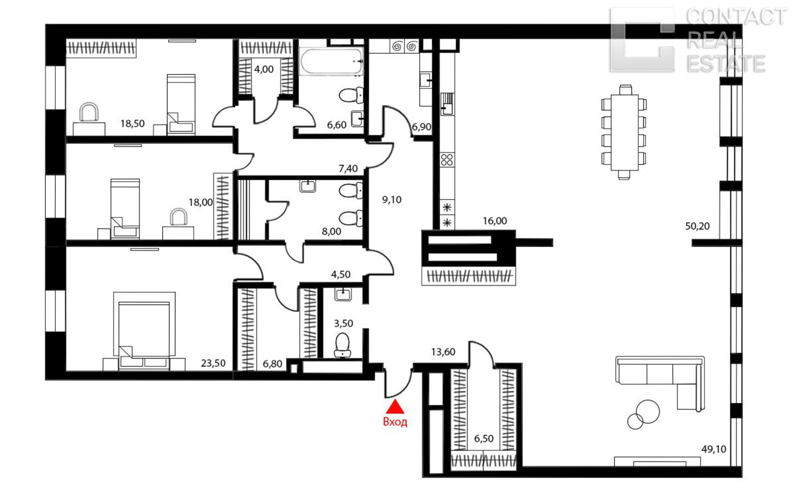 4 комнатная квартира