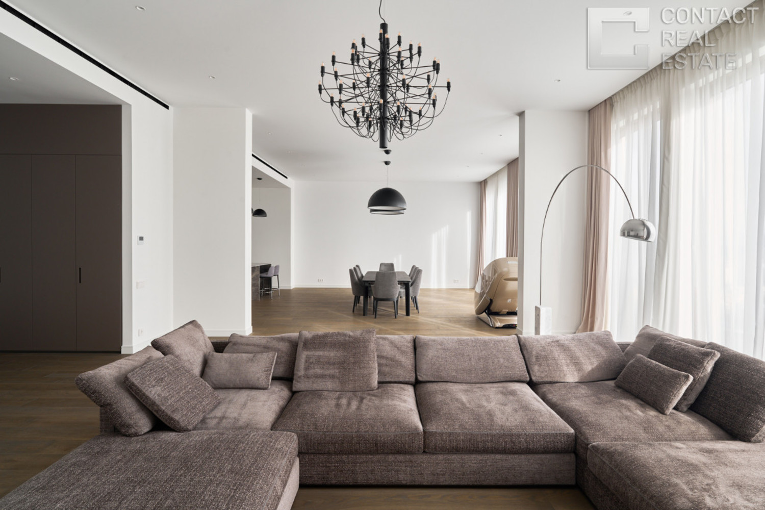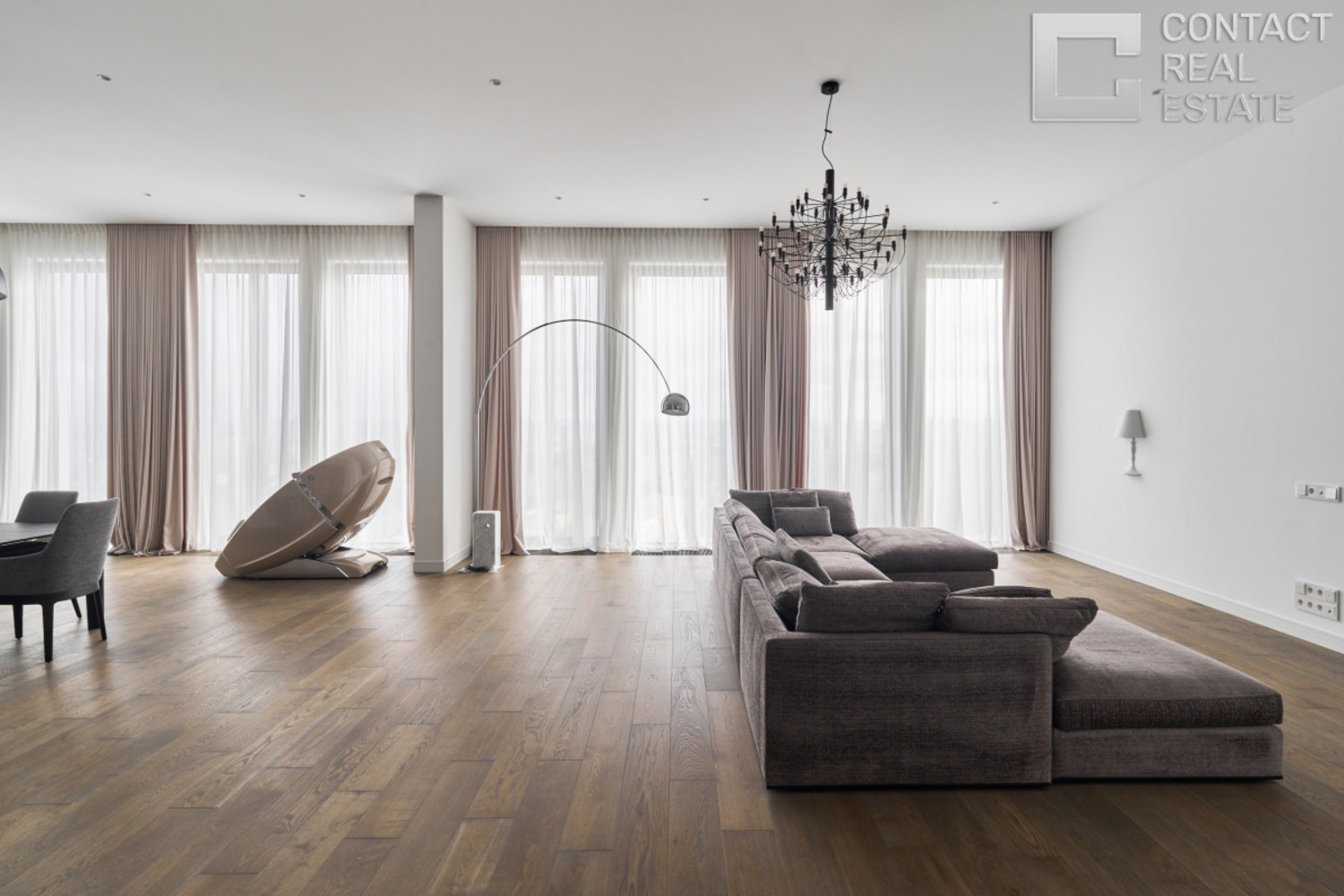 Предлагается к продаже эксклюзивный пентхаус площадью 253 кв.м в жилого комплексе премиум-класса Lucky на Пресне Функциональная планировка включает: просторную кухню-гостиную с зоной столовой, где приятно проводить семейные обеды, романтические ужины или домашние киносеансы; уютную мастер-спальню с ванной и гардеробной комнатой; детскую и уютную спальню; три санузла и три гардеробные, а также постирочную зону. Квартира находится на 21 этаже — из панорамных окон открываются непревзойденные виды на две стороны света: на центр города, гостиницу Украина, МИД, Дом Правительства РФ. [Лот #24281]