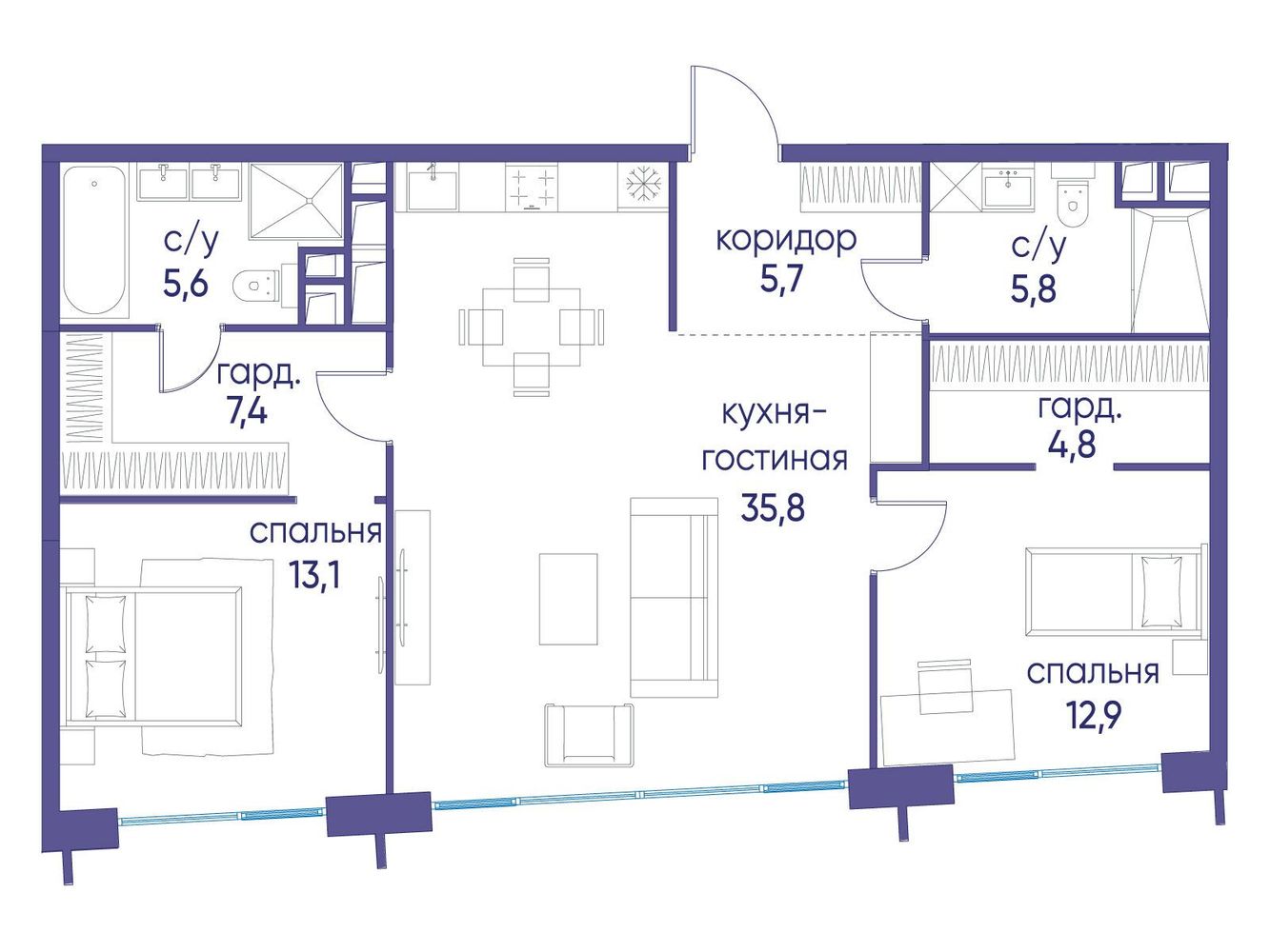 2 комнатная квартира