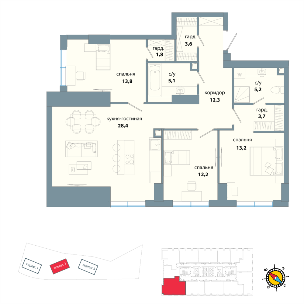3 комнатная квартира