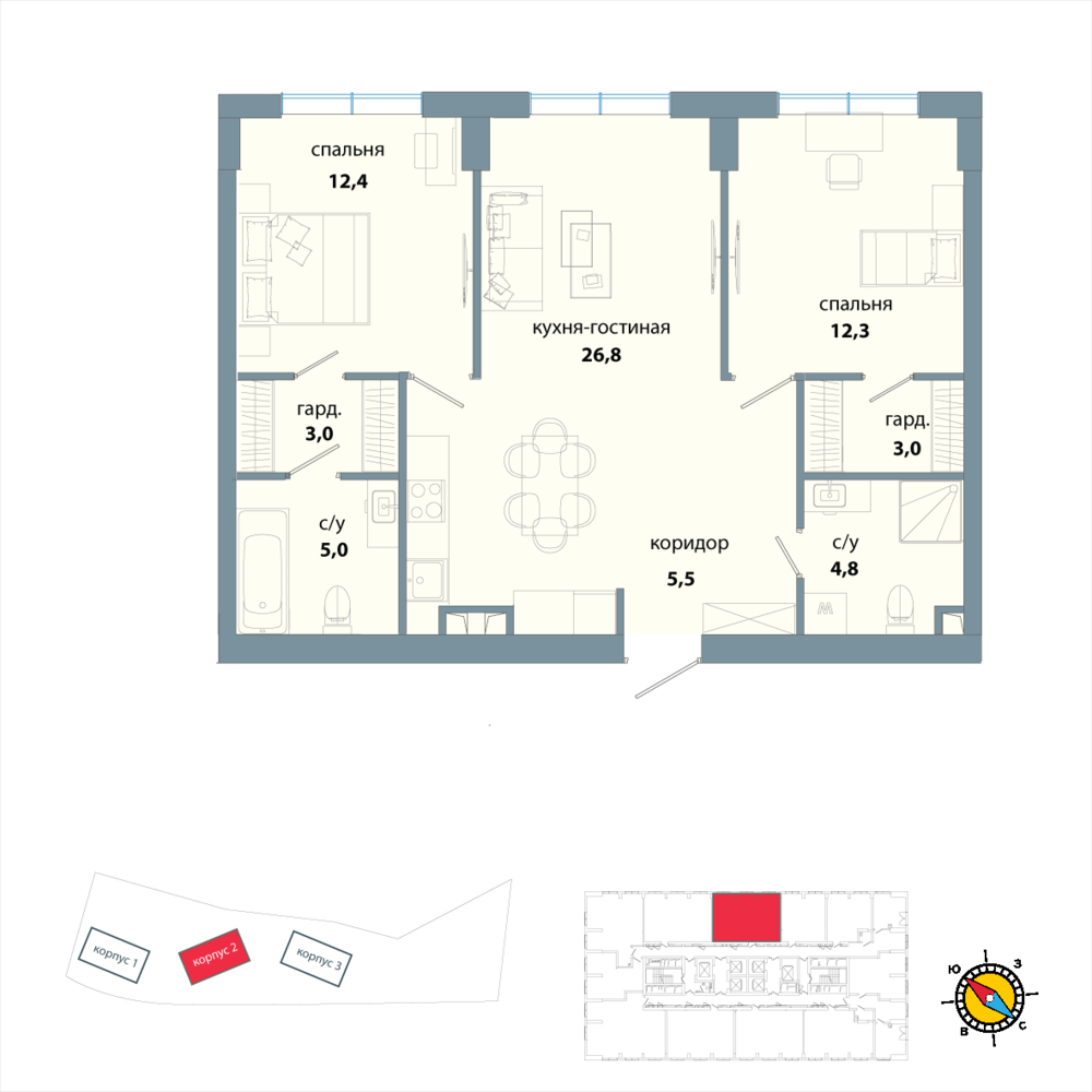 2 комнатная квартира