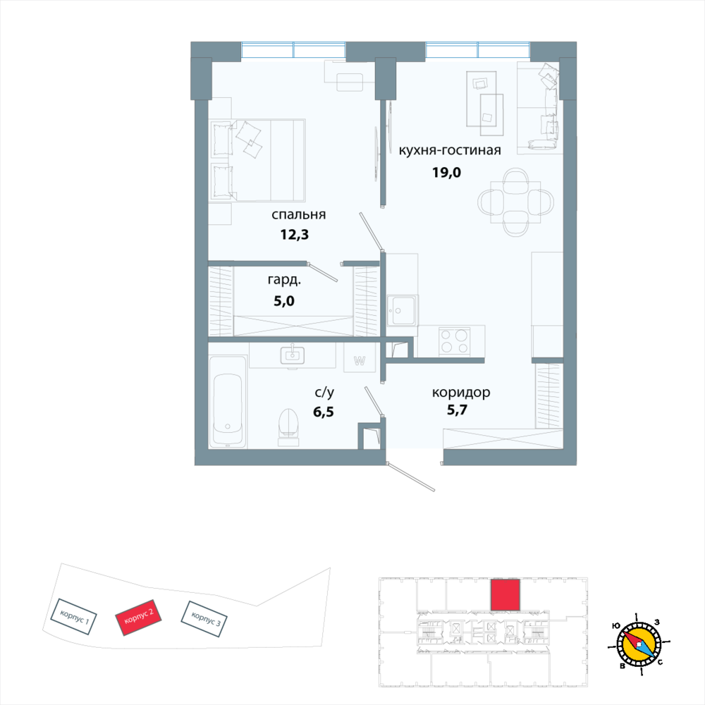 Новая однокомнатная квартира в новостройке на 41-м этаже площадью 48.5 кв. м. Премиальный квартал в исторической локации и в трендовом месте, среди зелени парков на престижном западе Москвы, в 10 минутах от Воробьевых гор.