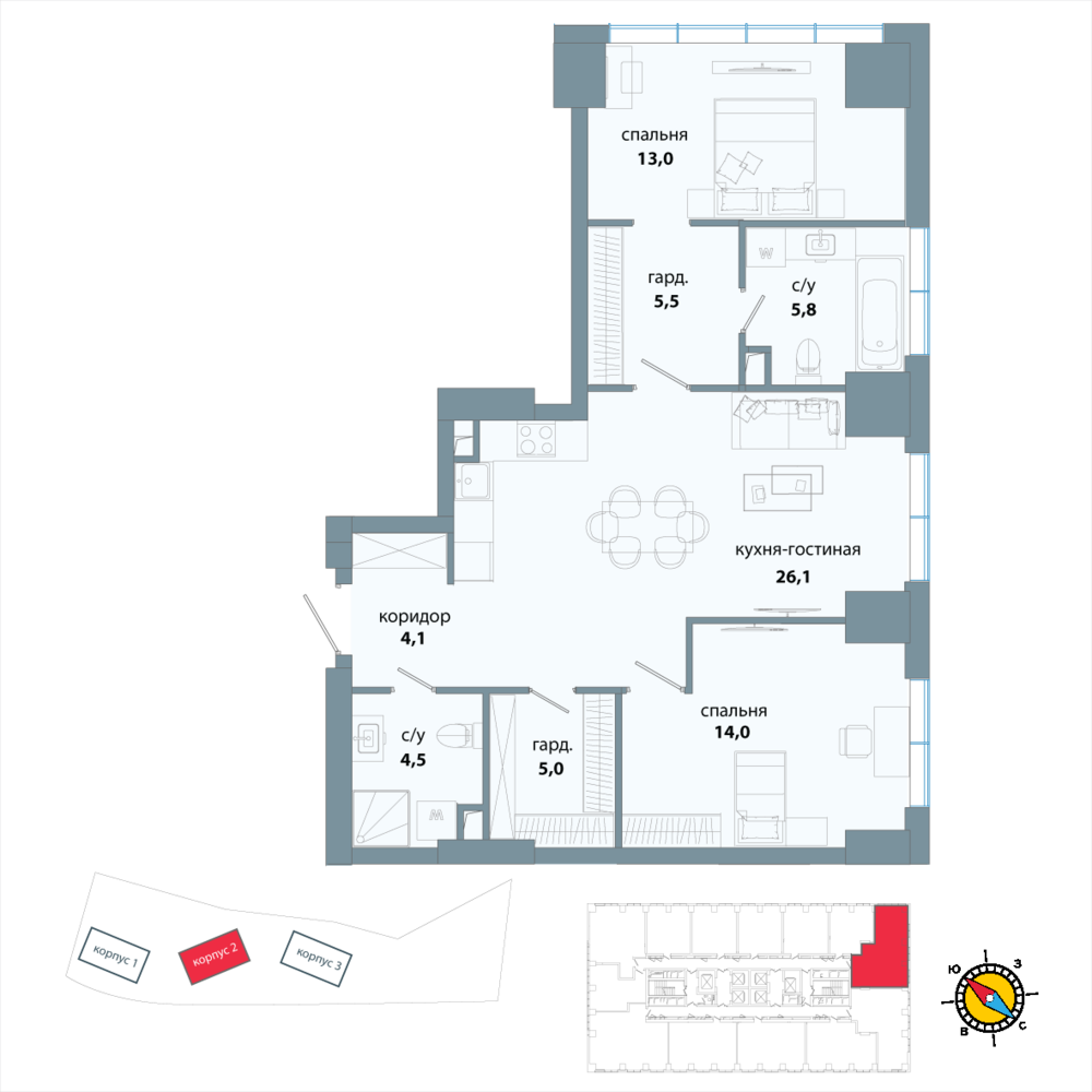 Новая двухкомнатная квартира в новостройке на 3-м этаже площадью 78 кв. м. Премиальный квартал в исторической локации и в трендовом месте, среди зелени парков на престижном западе Москвы, в 10 минутах от Воробьевых гор.