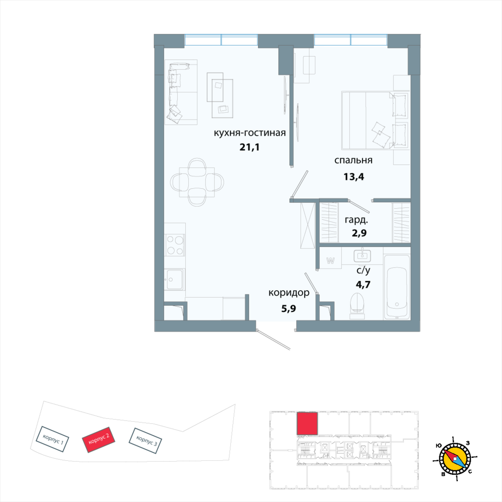 Общая площадь48.0 м2