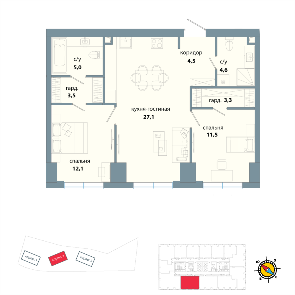 2 комнатная квартира
