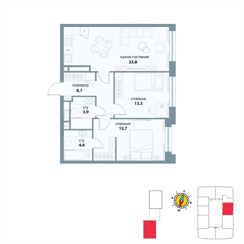 Новая двухкомнатная квартира в новостройке на 21-м этаже площадью 70 кв. м. Премиальный квартал в исторической локации и в трендовом месте, среди зелени парков на престижном западе Москвы, в 10 минутах от Воробьевых гор.