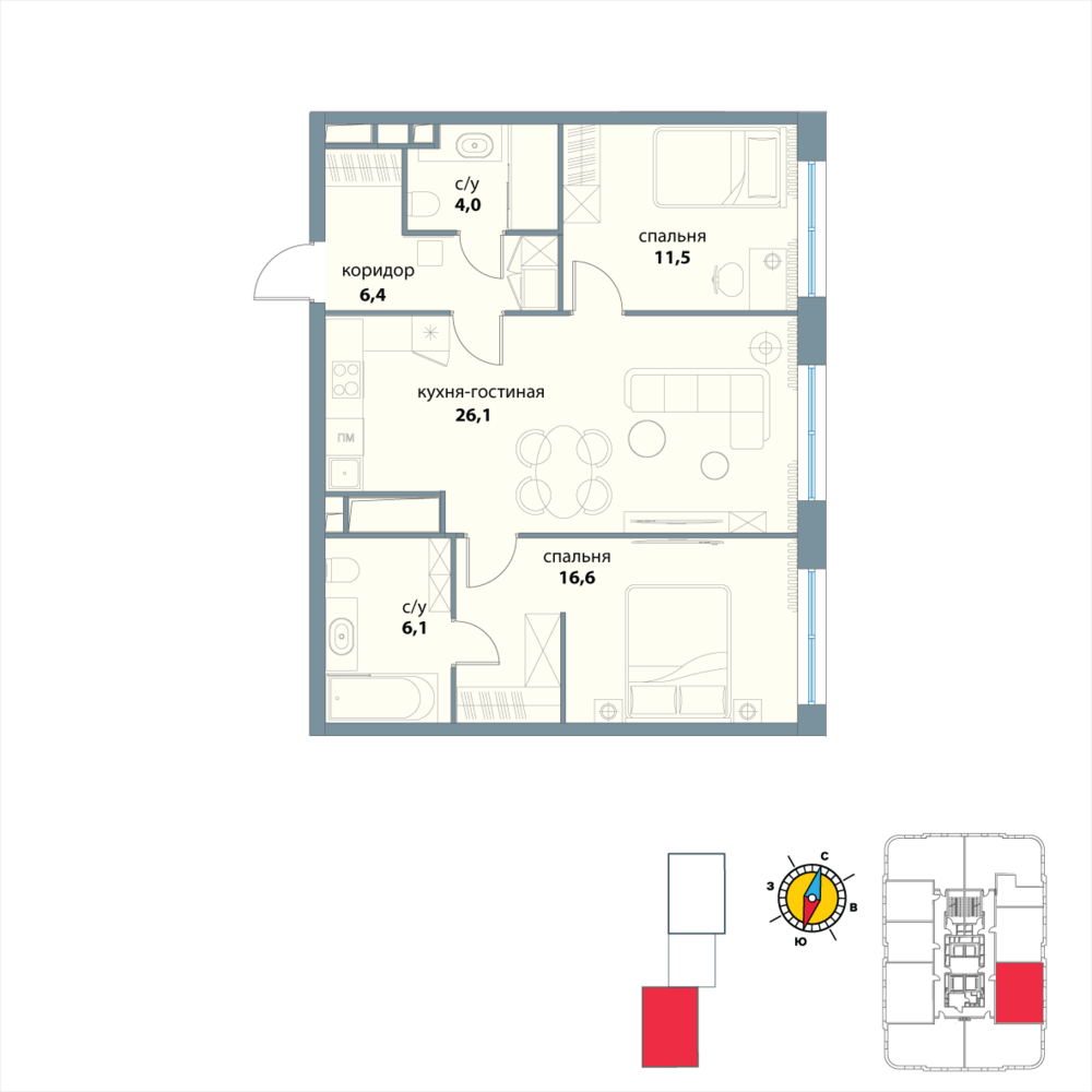 Новая двухкомнатная квартира в новостройке на 23-м этаже площадью 70.2 кв. м. Премиальный квартал в исторической локации и в трендовом месте, среди зелени парков на престижном западе Москвы, в 10 минутах от Воробьевых гор.