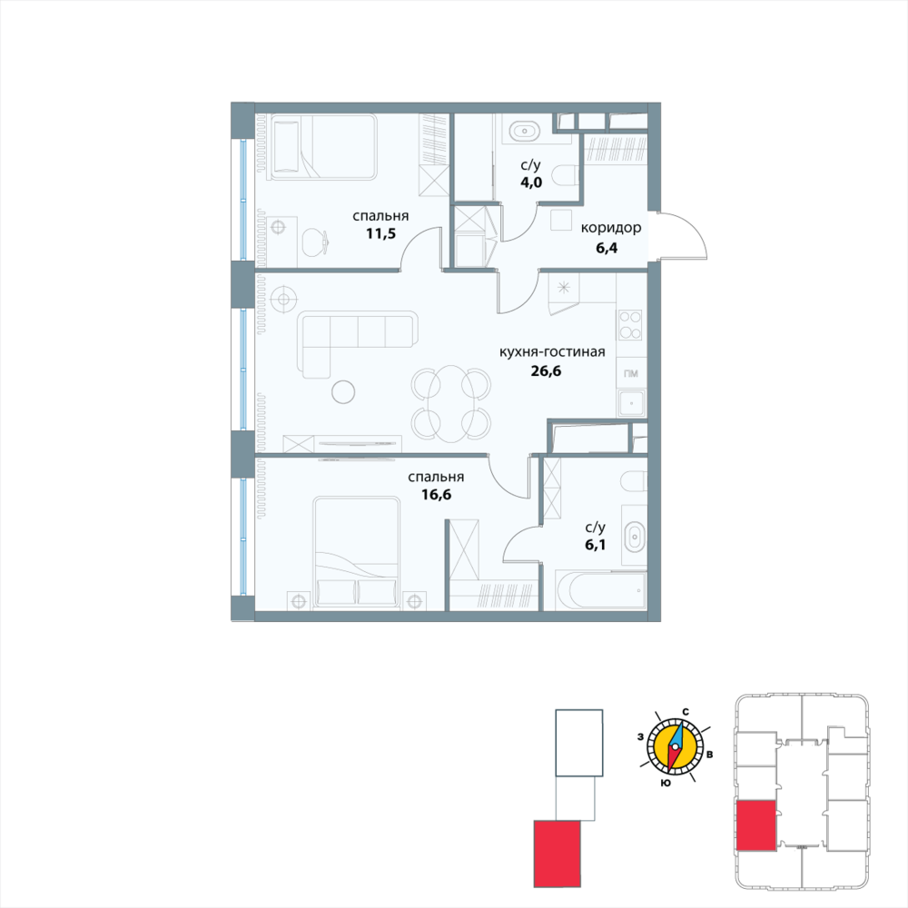 2 комнатная квартира