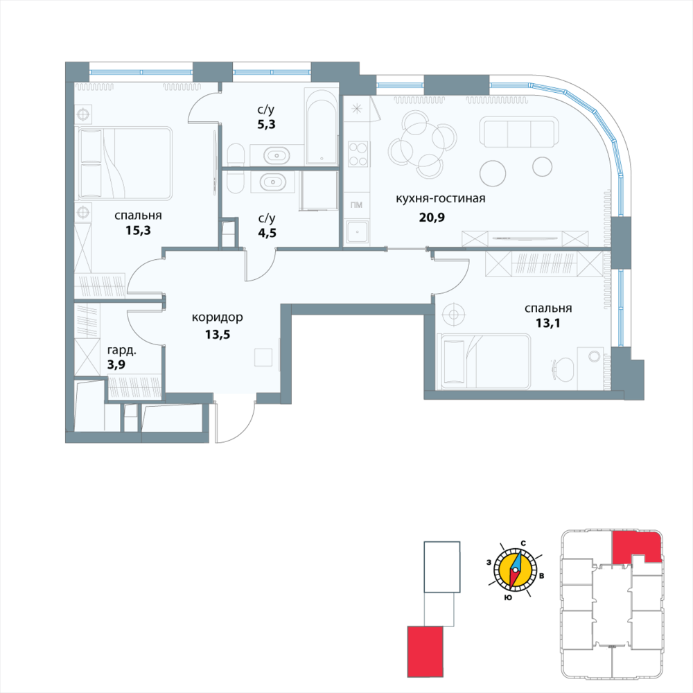 Новая двухкомнатная квартира в новостройке на 27-м этаже площадью 76.5 кв. м. Премиальный квартал в исторической локации и в трендовом месте, среди зелени парков на престижном западе Москвы, в 10 минутах от Воробьевых гор.
