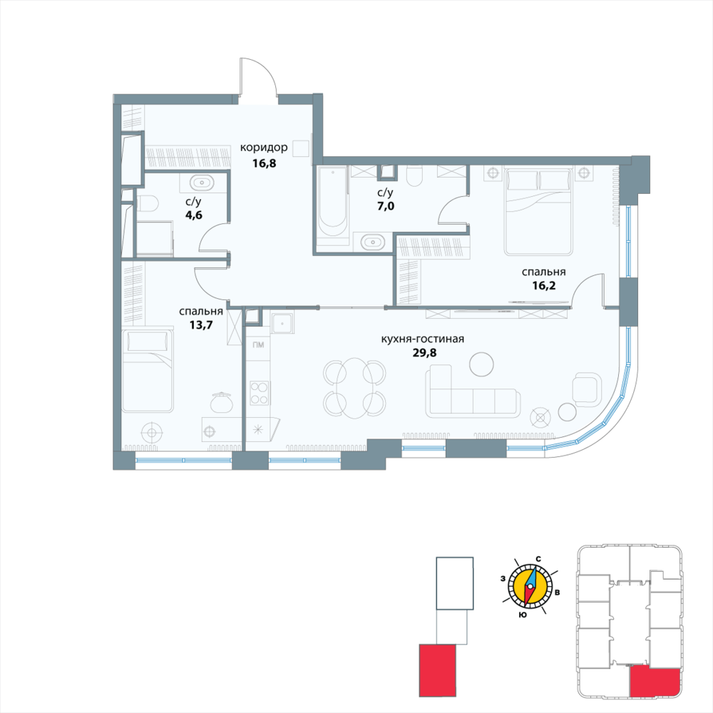 Новая двухкомнатная квартира в новостройке на 27-м этаже площадью 88.1 кв. м. Премиальный квартал в исторической локации и в трендовом месте, среди зелени парков на престижном западе Москвы, в 10 минутах от Воробьевых гор.