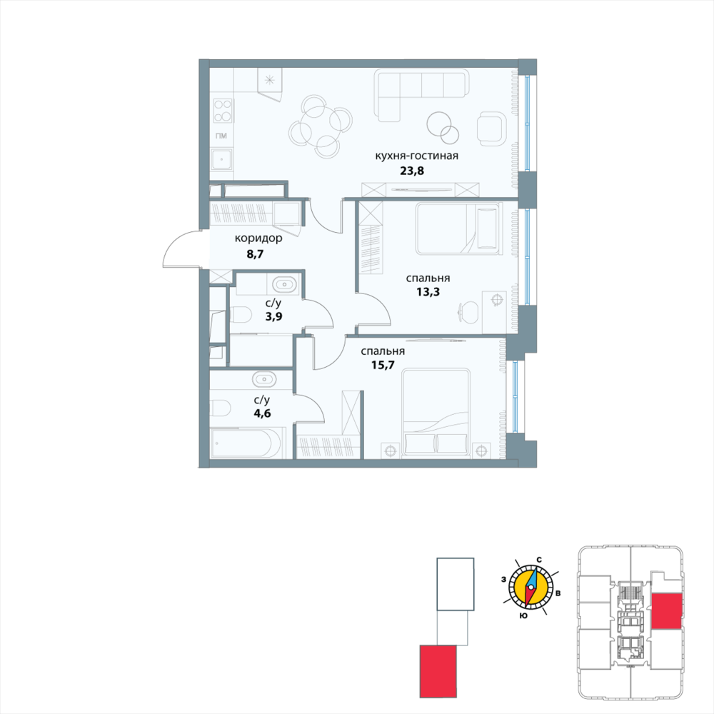 2 комнатная квартира