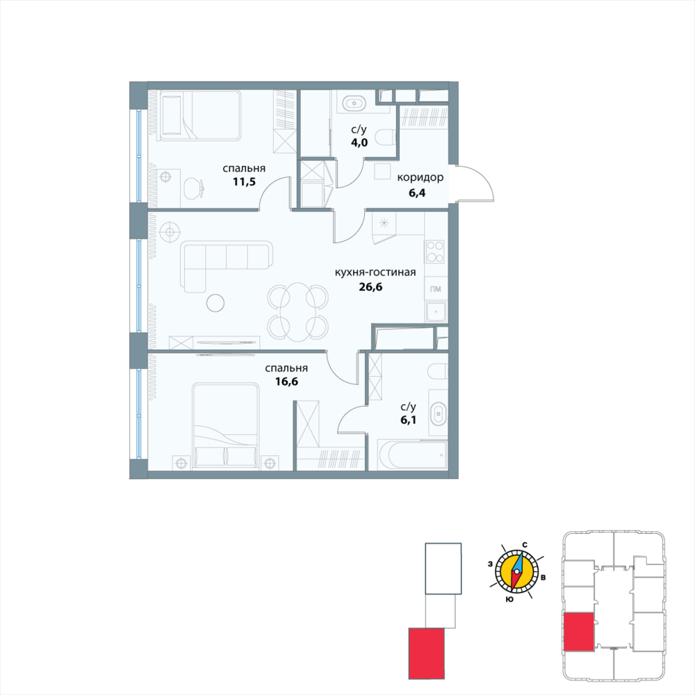 2 комнатная квартира