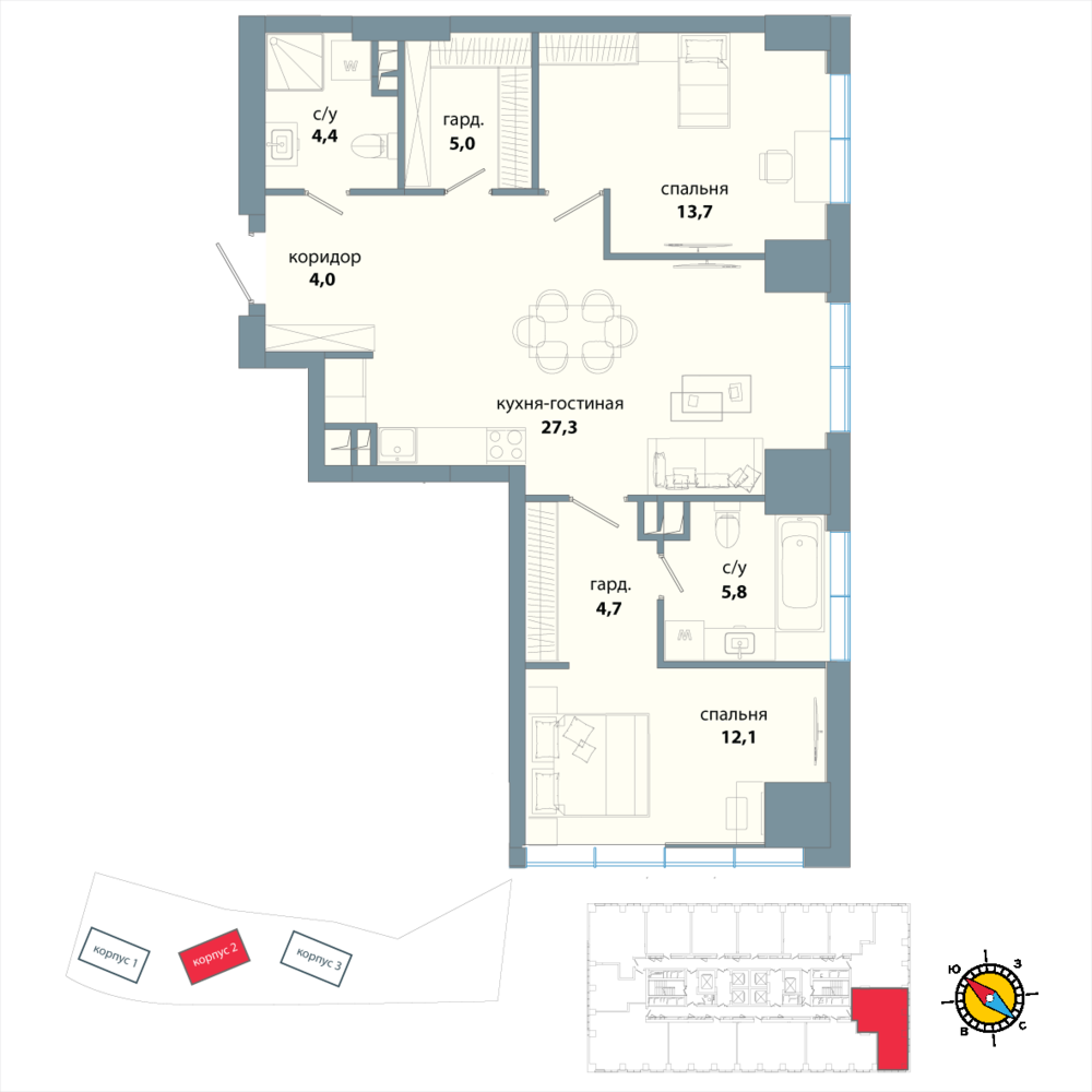 2 комнатная квартира