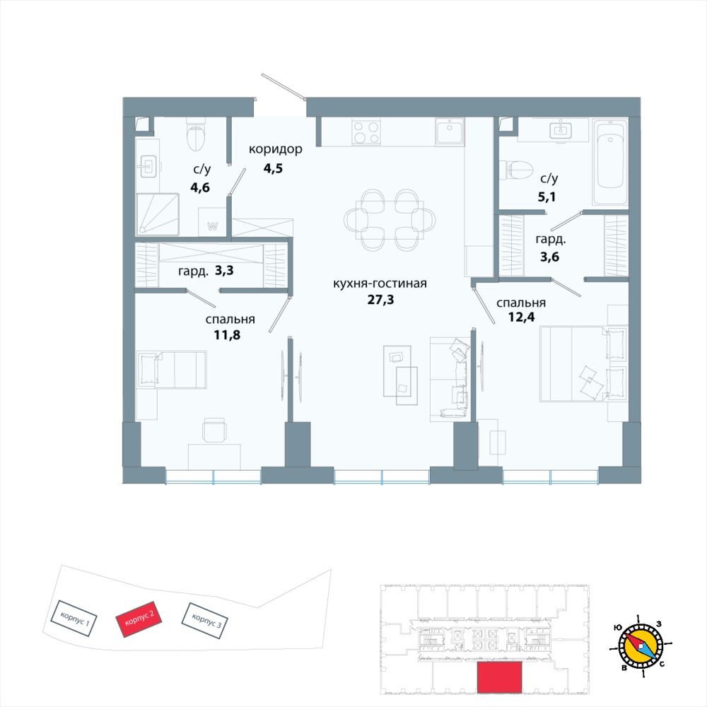 2 комнатная квартира