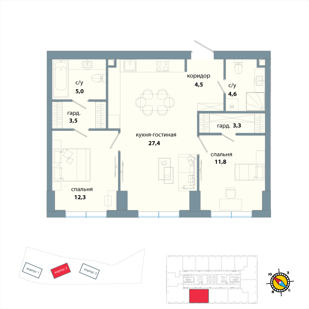 2 комнатная квартира