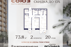 Новая двухкомнатная квартира в новостройке на 12-м этаже площадью 72.6 кв. м. Премиальный квартал в исторической локации и в трендовом месте, среди зелени парков на престижном западе Москвы, в 10 минутах от Воробьевых гор.