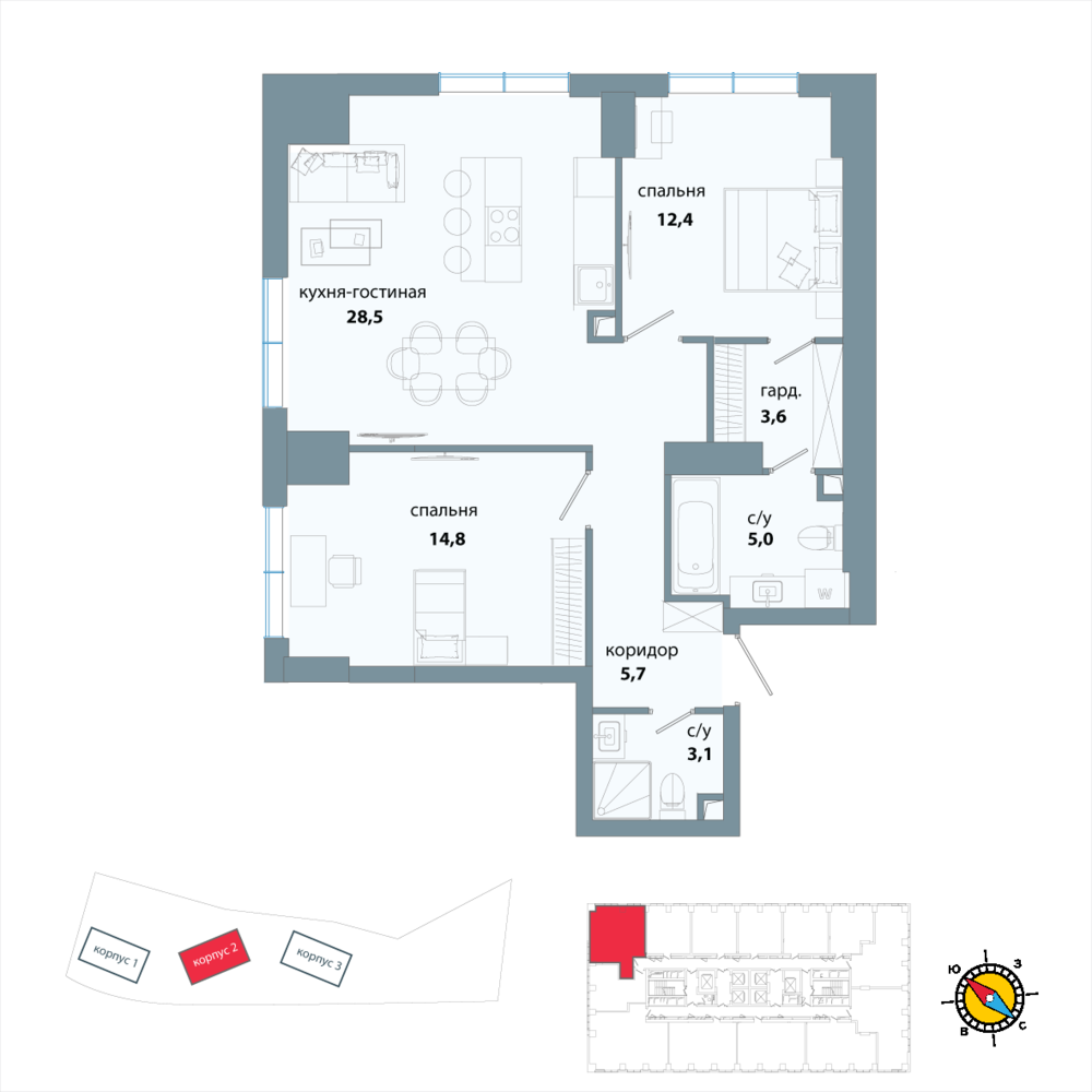 2 комнатная квартира