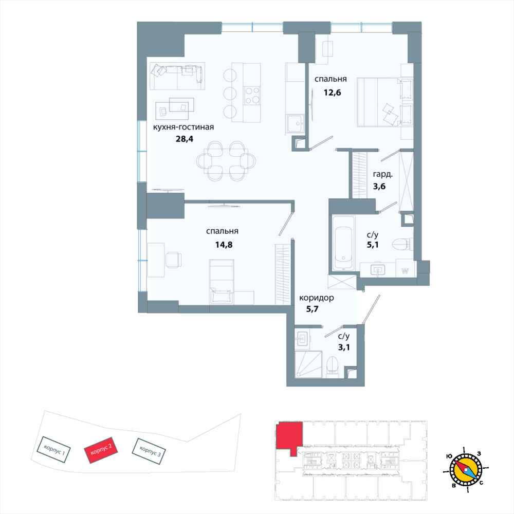 2 комнатная квартира