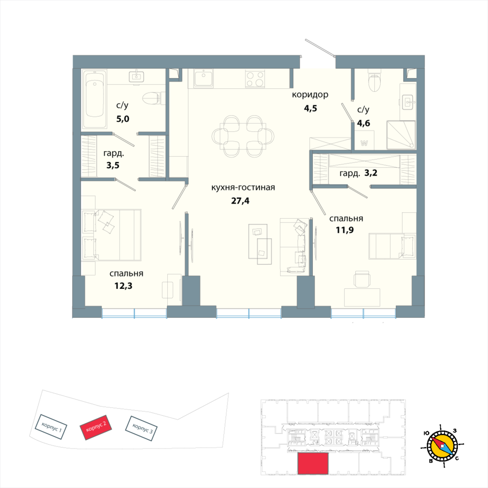 2 комнатная квартира