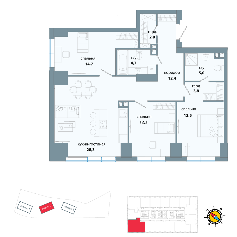 3 комнатная квартира