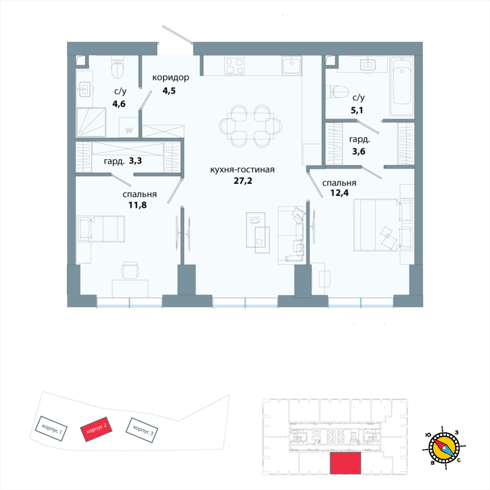 2 комнатная квартира