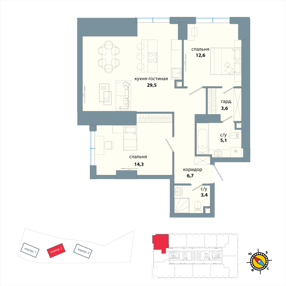 2 комнатная квартира