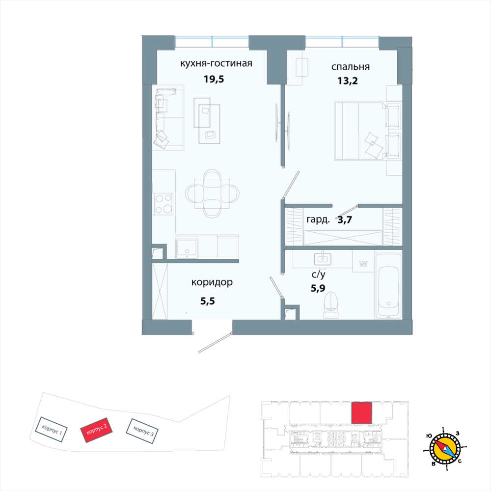 Тип предложения1 комнатная квартира
