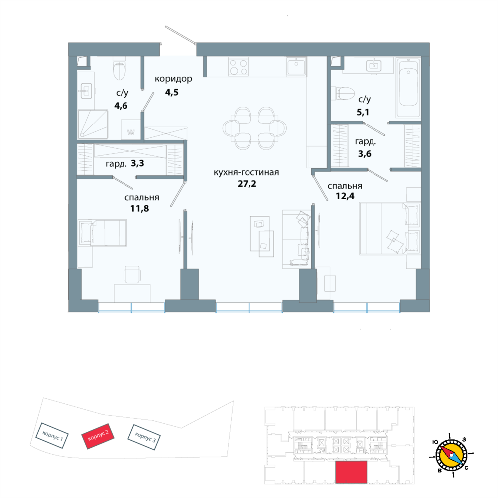 2 комнатная квартира