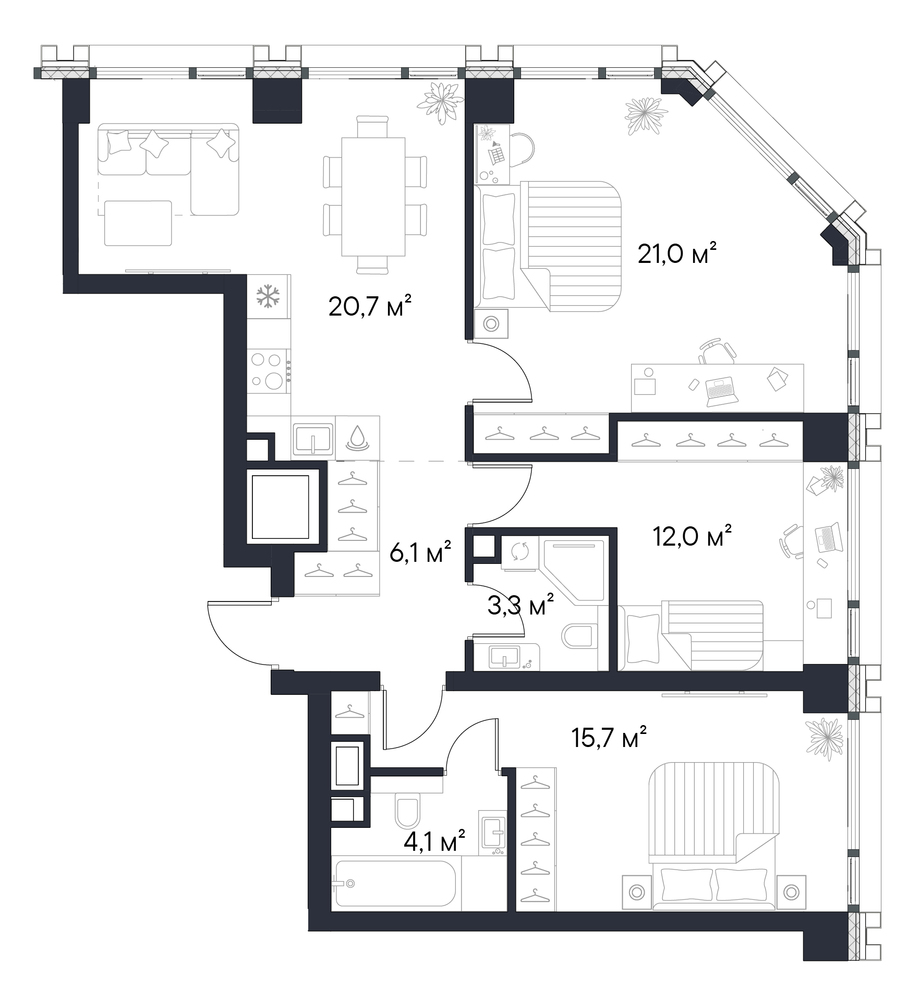 3 комнатная квартира