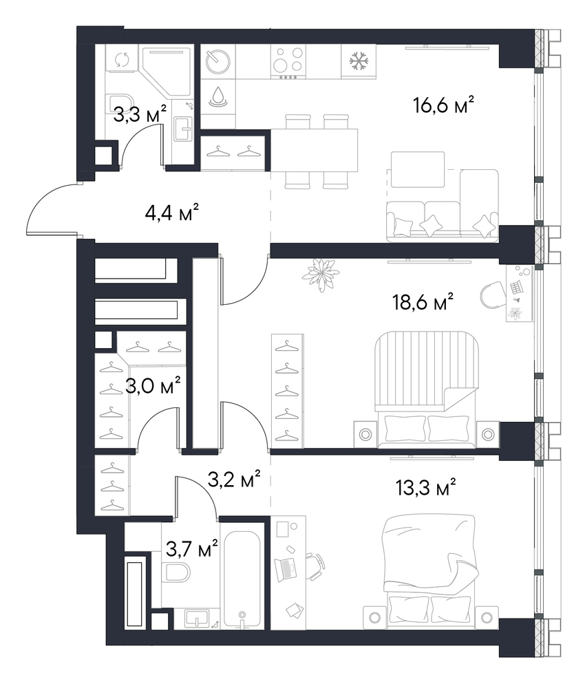Продаётся просторная 2-комнатная квартира площадью 66,1 м², расположенная на 27 этаже корпуса 2.1 — идеальный выбор для тех, кто ценит эстетику высоты, панорамы города и современный премиум-класс. С декабря 2025 года совместно со Сбер действует ипотечная программа с фиксированной ставкой 13,9% на весь срок кредитования. Также доступна программа рассрочки с комфортными фиксированными платежами от 60 000 рублей до октября 2028 года. Подробности — у менеджеров отдела продаж в онлайн-чате справа. Первый Нагатинский — самый крупный жилой квартал в локации, формирующий новый облик района и задающий стандарты городского премиум-класса. Проект сочетает продуманную архитектуру, премиальные общественные пространства и масштабную инфраструктуру, создавая среду, где вдохновение и удобство встречаются ежедневно. Транспортная доступность Находится в сердце Южного округа Москвы — районе с уже сложившейся и богатой инфраструктурой. Внешняя среда проекта усиливает комфорт жизни: рядом расположены зелёные парки, современные спортивные объекты, торговые центры и престижные образовательные учреждения. м. Нагатинская ~ 3 мин. МЦК Верхние котлы ~ 5 мин. Речной причал ~ 15 мин. ТТК ~ 10 мин. Садовое кольцо ~ 15 мин. Благоустройство премиального уровня Ландшафтные архитекторы бюро А4 создали систему взаимосвязанных пространств для отдыха, прогулок и гармонии. Уникальная wellness-зона вписана в природный ритм Москвы и формирует атмосферу спокойствия. • 10 000 зелёных насаждений • Японский сад • Зона у огня с биокамином • Зона у воды • Арт-тропа «Променад» • Воркаут-площадка • Гамаки для отдыха • Нетворкинг под открытым небом Инфраструктура нового поколения Квартал формирует современный формат городской жизни, объединяя приватность, удобство и пространство для развития. Всё расположено внутри проекта — без необходимости покидать территорию. • Скай-бар на 28 этаже • Гурме-вилла • Приватный СПА и фитнес премиум-класса • Тренажёрный зал и студии групповых тренировок • Хамам и финская сауна • Коворкинг-клуб • Клубный лаундж • Кинотеатр и сигарная комната • Музыкальная студия • Арт-зал с подиумом • Детские комнаты, игровые зоны и творческие студии • Круглогодичные детские площадки • Пляжный клуб на берегу Москвы-реки Образовательный кластер внутри квартала Внутри квартала созданы пространства для образования, творчества и игр, где дети могут развиваться, раскрывать таланты и чувствовать себя в безопасности — не покидая территории своего дома. Школа нового поколения на 1000 учеников Лучший детский сад в Москве с бассейном Тематическая детская площадка Гора Фудзияма и Большая волна