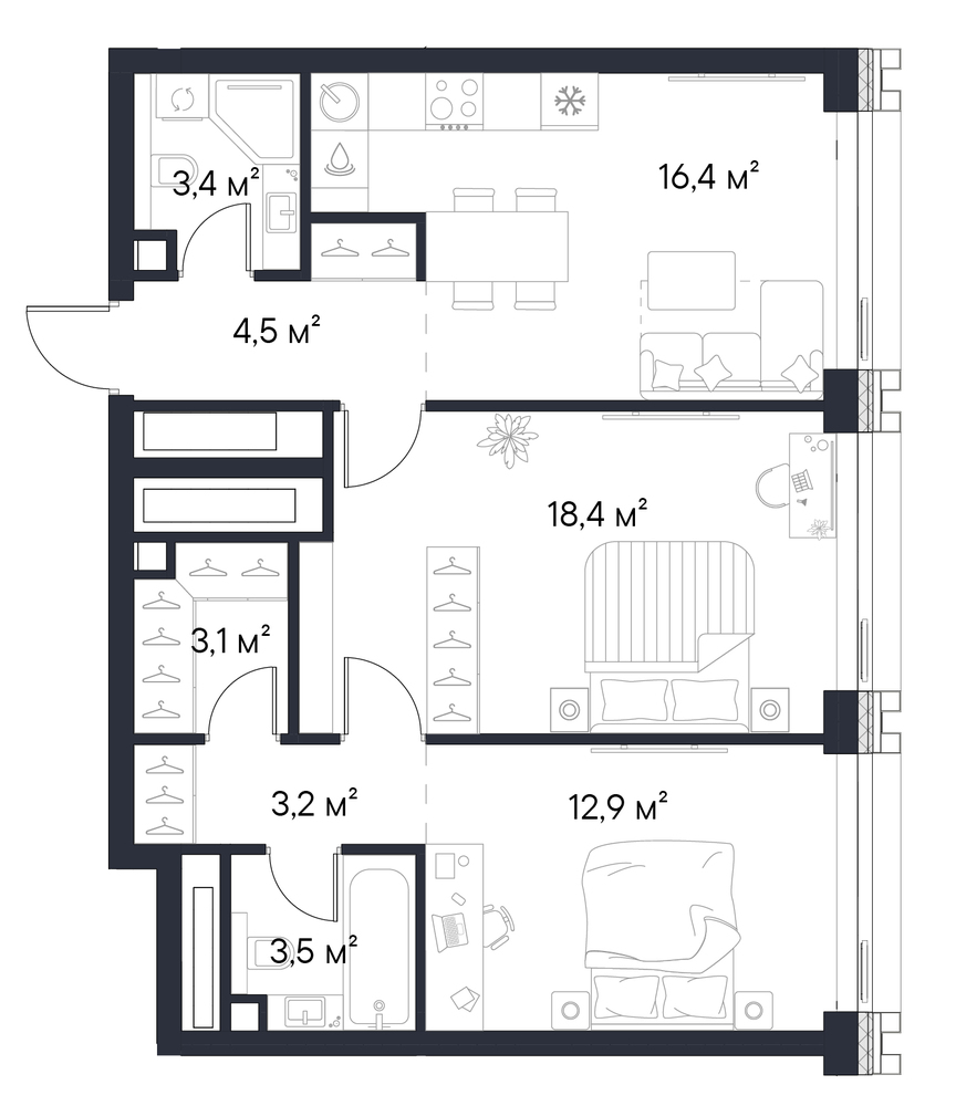 65.4 м2