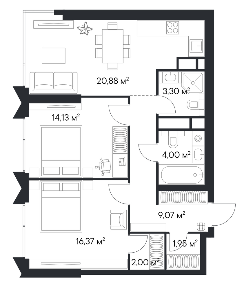 2 комнатная квартира